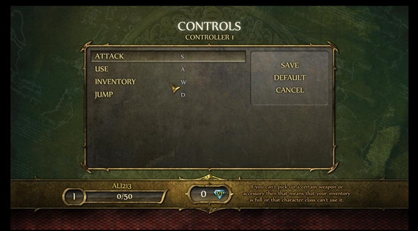 3.然后默认是只有一名玩家的,所以就是单人键位,移动是上下左右无法更改的,能改的就是攻击、使用道具、选择道具、跳跃这几个键位。