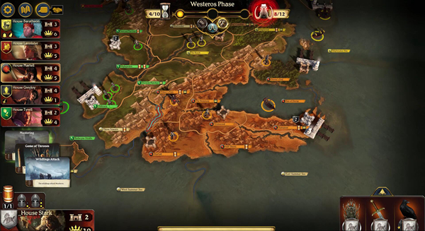 权力的游戏战棋持续10回合。在第10回合末,拥有最多要塞和城市的玩家获胜。