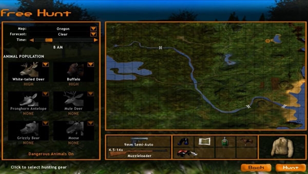 •提供了多种武器和道具供玩家使用,武器包含狙击猎枪,手枪和无声的弓箭弩具等,而多达30多种道具对玩家快速安全的猎杀动物可会起到事半功倍的效果