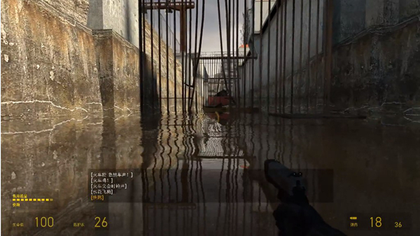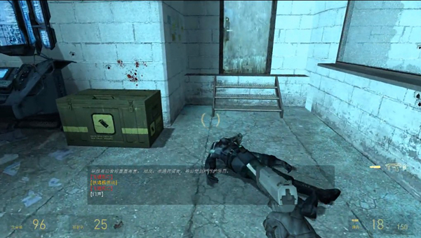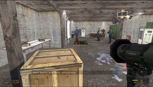 下河游到红色货车车厢上的梯子边,上梯子跳进车厢。车厢里面有个补血包,一个弗地冈人和一个人。他们会带你到起义者使用的通往Vance博士实验室的地下铁路,弗地冈人还会帮你的HEV防护服补30点甲。出门口施展撬棍开路。