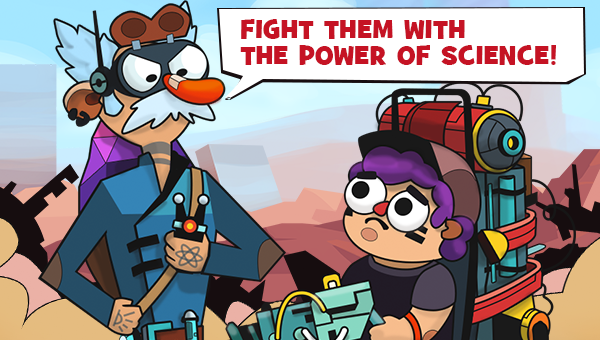为了在疯狂科学中生存下去:长期而言,你不仅要跑得快,而且要想得快!在你的研究顾问偷了(以科学的名义)一个非常有价值的外星人水晶,愤怒的外星人开始追逐你们。但你可以很容易地逃离他们,你所需要的只是调整手持的门式发电机和…等等,你怎么调整它?我们会在跑步的时候找出答案!