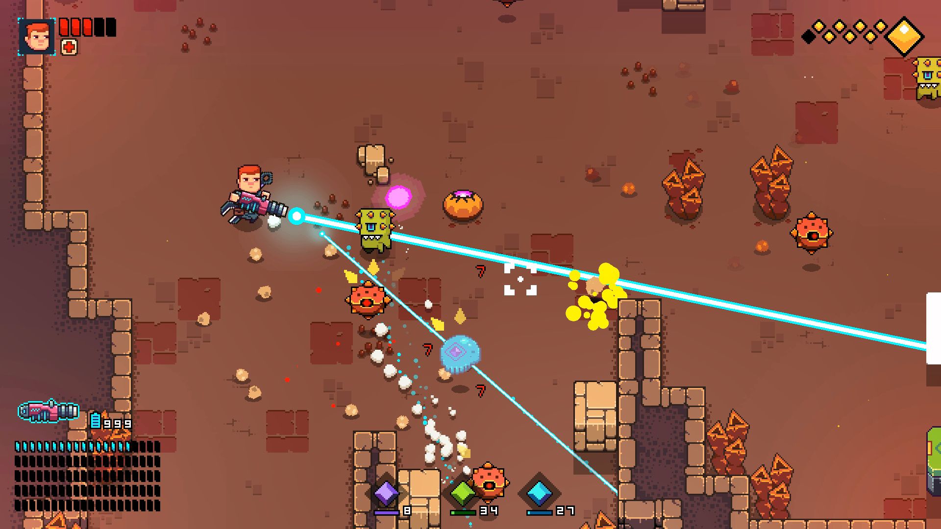 太空罗宾逊(Space Robinson)是一款动作射击游戏。玩家在游戏中扮演一名普通的工程师,在充满神秘的遥远星球中与敌人作战,为了能够生产的更长久,你需要解锁一些新的枪械,迎接后面更艰难的挑战,破坏掉阻碍你前行的障碍,逃离这个危险的星球。