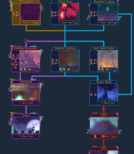 在死亡细胞:王后与海中,又为玩家提供了几种全新的设计精巧的地图,如果玩家们不知道游戏里的各个路线怎么走,可以看下面带来路线图以及路线文字攻略。