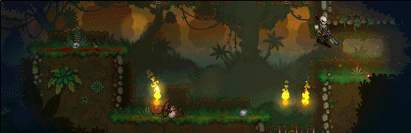 360°射击的平台动作游戏。像个真正的硬汉一样跳跃、冲刺、射击、斩击并把敌人炸上天吧!