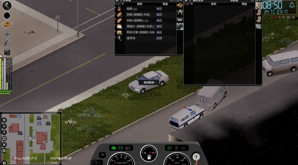 最后就是搞台车了,这个没偷车接火技能的先捡到地上的钥匙,然后倒点油,注意因此也要油桶,装满油是五单位,车头前面点f可以看到车辆属性,一般开车只要保证有油和车里电池有电就好,有了车跑路就很方便了。