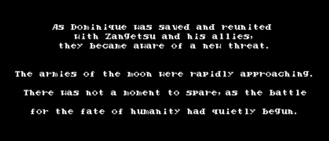 终章:在2章节中收集齐前三关的三把刀并在第四关左转合成斩魔刀,消灭沙发恶魔,拯救多米尼克。多米尼克发现月球人打过来了,一代人马出现,老头要你收集材料造火箭。每打通一关解锁一个队友,但如果你是个猛男,随便打一关就可以二人上天。然后登上月球关,干翻boss。真结局达成。