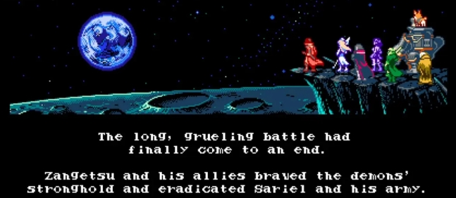 漫长而艰苦的战斗终于划上了句号。斩月和他的伙伴们勇闯恶魔巢穴,铲除了沙利叶(月之天使)和他的党羽。破晓的光照亮大地,仿佛是在为他们庆功。除了这些勇士,没有人知道这里发生的一切。但他们知道,正是因为他们,地球才又一次迎来了和平