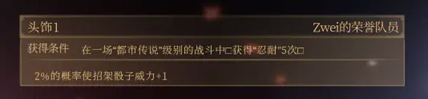 获得条件:在一场“都市传说”级别的战斗中获得“忍耐”5次