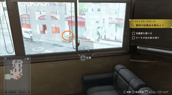 第五只,乔装调查搜索的时候,找出房间内电灯开关的任务,窗外望去大门外面。