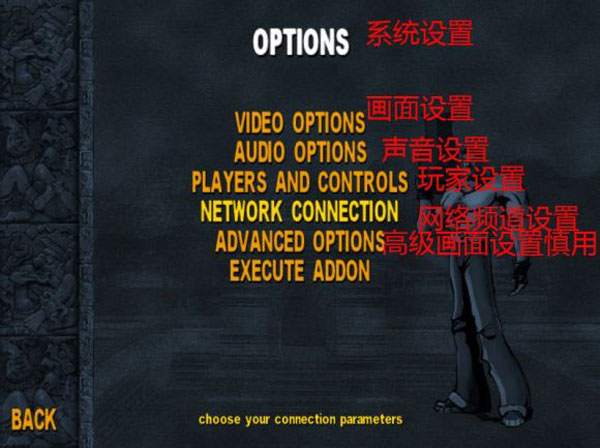 其他可能的设置还有很多,诸如玩家设置、画面设置、声音设置、网络设置等,这些功能在主菜单的OPTION里可以找到,具体如下: