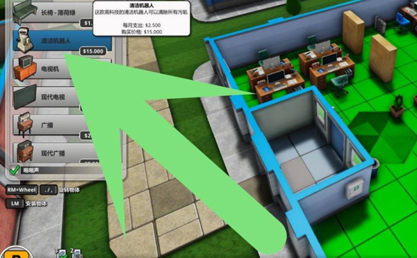 在疯狂游戏大亨2游戏里,经常会出现办公室环境不够干净的提示,这时候就需要一点情节功能了,其实只需要扫地机器人就能对办公室进行打扫了,下面带来扫地机器人的安装方法。