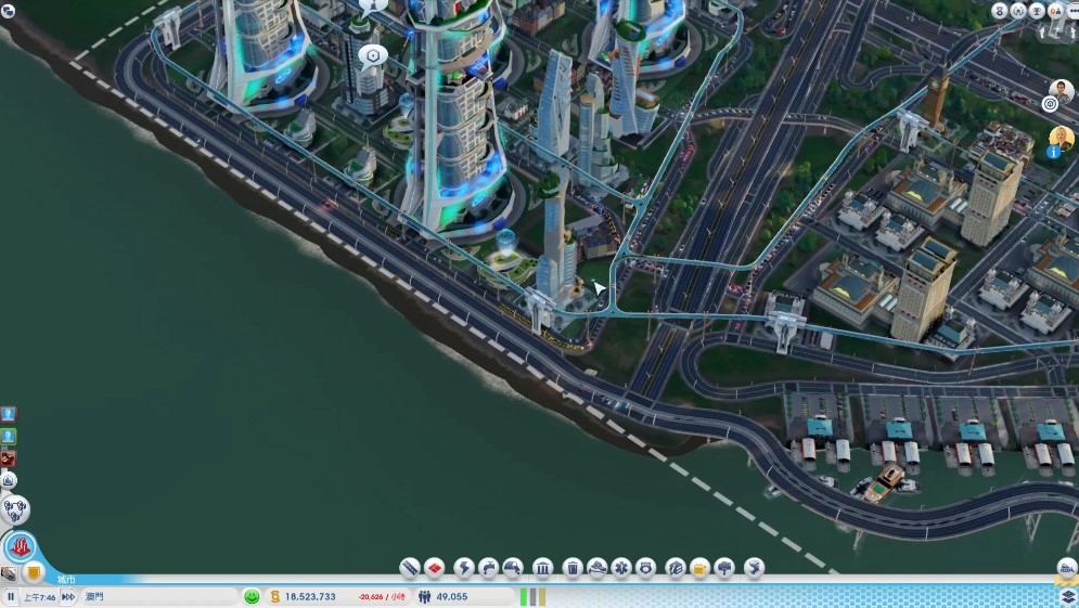 首先,在游戏前期,我们没有较多的空闲地点进行建设,此时我们的建设主要是进行前期的市中心建设以及道路规划和未来规划。